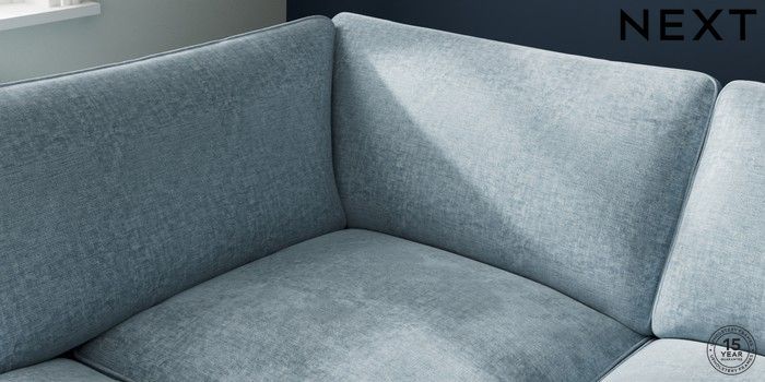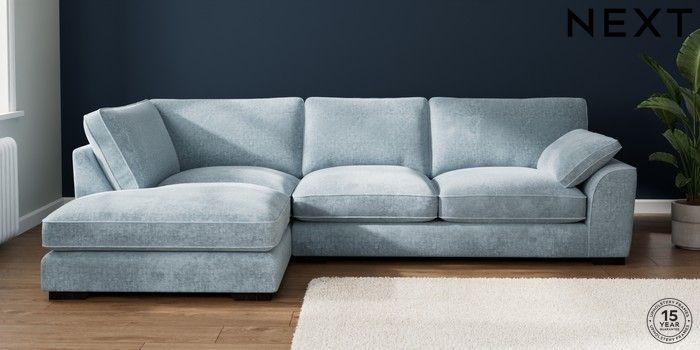 7.3.1 Buy Stamford Grand Relaxed Sit Large Corner Chaise - Left Hand Plush Chenille Light Blue Large Square Angle - Dark from the Next UK online shop