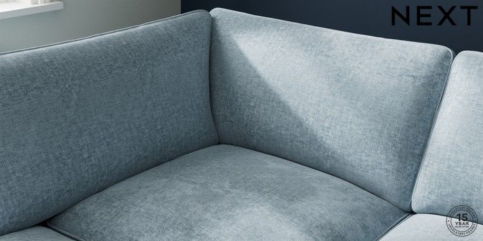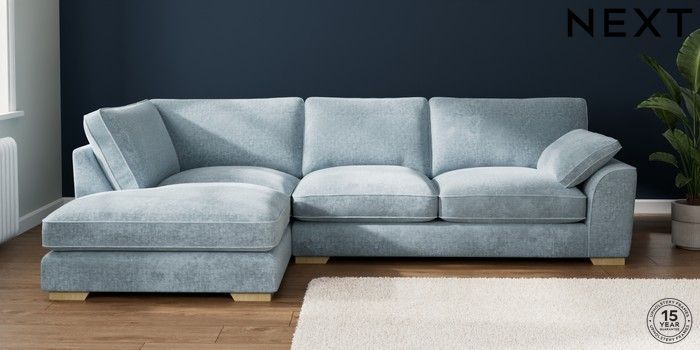 7.3.1 Buy Stamford Grand Relaxed Sit Large Corner Chaise - Left Hand Plush Chenille Light Blue Large Square Angle - Light from the Next UK online shop