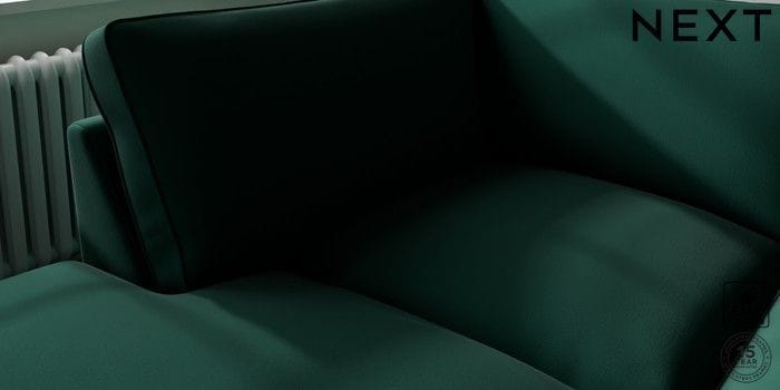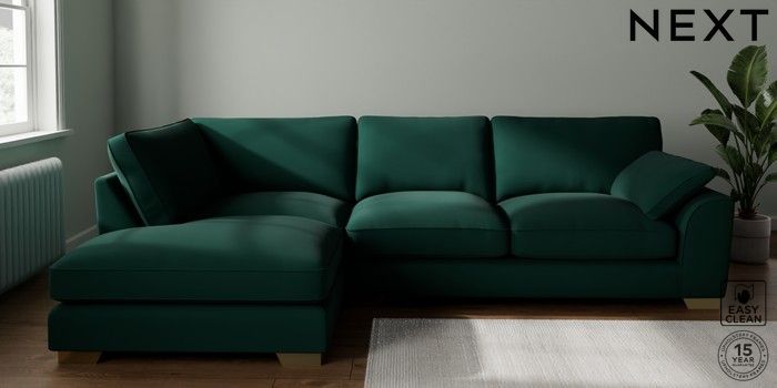 7.3.1 Buy Stamford Grand Relaxed Sit Large Corner Chaise - Left Hand Plush Velvet Easy Clean Bottle Green Large Square Angle - Brushed Brass from the Next UK online shop Click here to use our accessible website
