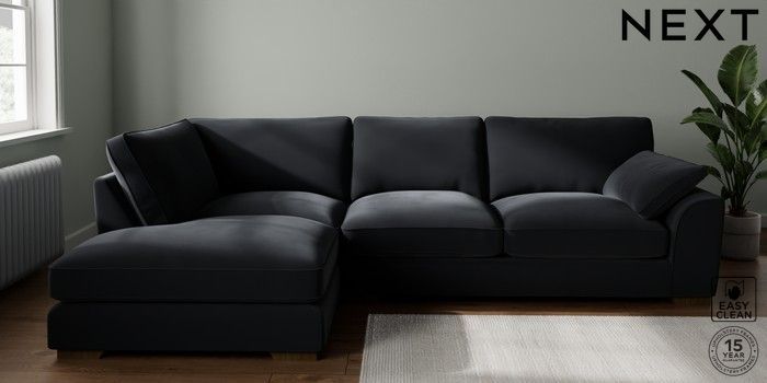 7.3.1 Buy Stamford Grand Relaxed Sit Large Corner Chaise - Left Hand Plush Velvet Easy Clean Charcoal Grey Large Square Angle - Mid from the Next UK online shop Click here to use our accessible website