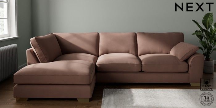 7.3.1 Buy Stamford Grand Relaxed Sit Large Corner Chaise - Left Hand Plush Velvet Easy Clean Mid Natural Large Square Angle - Brushed Brass from the Next UK online shop Click here to use our accessible website