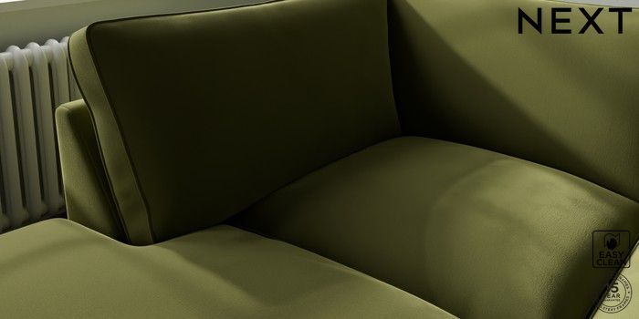 7.3.1 Buy Stamford Grand Relaxed Sit Large Corner Chaise - Left Hand Plush Velvet Easy Clean Mid Olive Green Large Square Angle - Light from the Next UK online shop Click here to use our accessible website