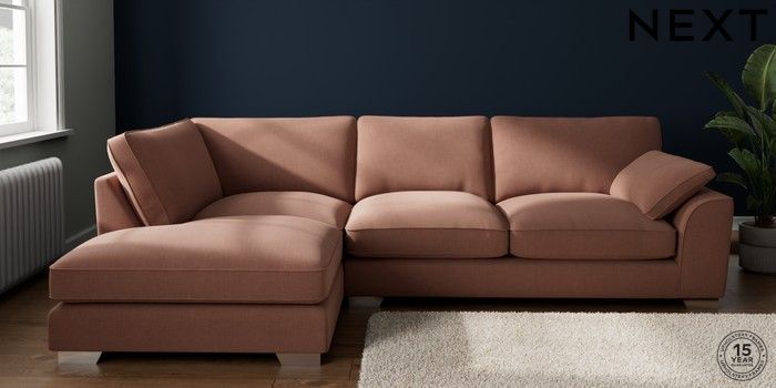 7.3.1 Buy Stamford Grand Relaxed Sit Large Corner Chaise - Left Hand Relaxed Linen Look Light Rust Brown Large Square Angle - Chrome Metal from the Next UK online shop Click here to use our accessible website