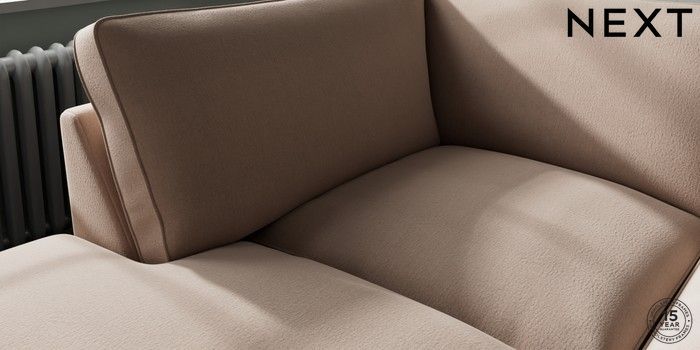 7.3.1 Buy Stamford Grand Relaxed Sit Large Corner Chaise - Left Hand Relaxed Linen Look Mid Natural Large Square Angle - Chrome Metal from the Next UK online shop