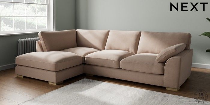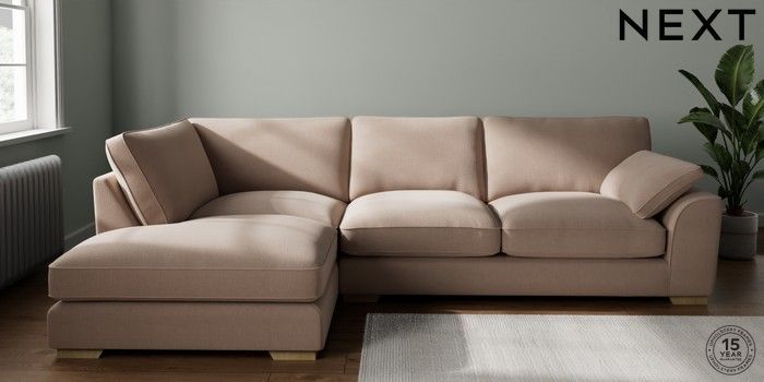 7.3.1 Buy Stamford Grand Relaxed Sit Large Corner Chaise - Left Hand Relaxed Linen Look Mid Natural Large Square Angle - Light from the Next UK online shop Click here to use our accessible website