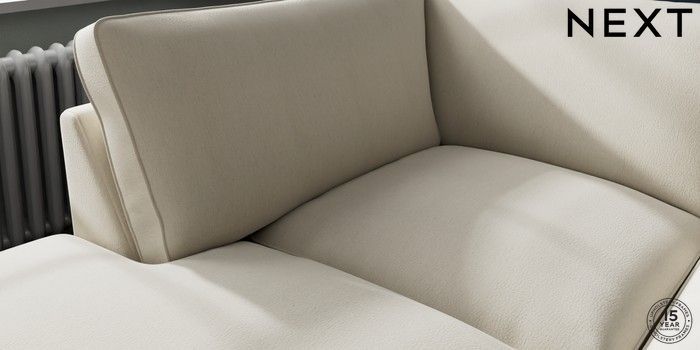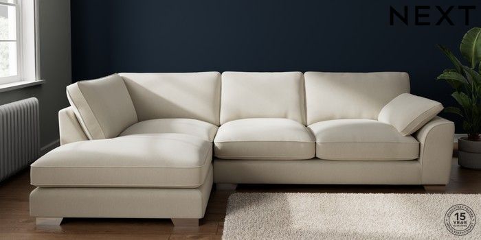 7.3.1 Buy Stamford Grand Relaxed Sit Large Corner Chaise - Left Hand Relaxed Linen Look Oyster Large Square Angle - Chrome Metal from the Next UK online shop Click here to use our accessible website