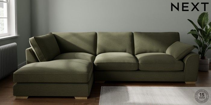 6.12.1 Buy Stamford Grand Relaxed Sit Large Corner Chaise - Left Hand Ripple Chenille Mid Moss Green Large Square Angle - Light from the Next UK online shop Click here to use our accessible website