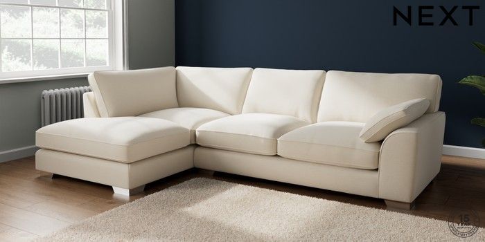 7.3.1 Buy Stamford Grand Relaxed Sit Large Corner Chaise - Left Hand Ripple Chenille Oyster Large Square Angle - Chrome Metal from the Next UK online shop Click here to use our accessible website