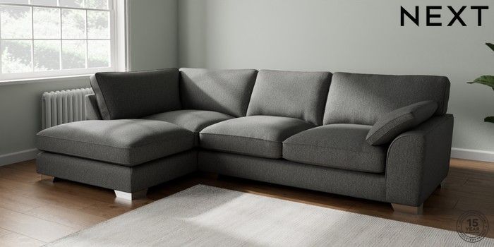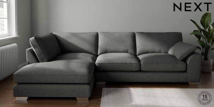 7.3.1 Buy Stamford Grand Relaxed Sit Large Corner Chaise - Left Hand Tweedy Chenille Dark Grey Large Square Angle - Chrome Metal from the Next UK online shop Click here to use our accessible website