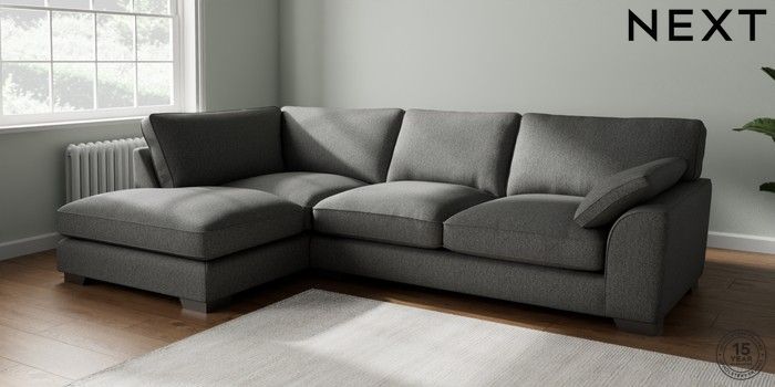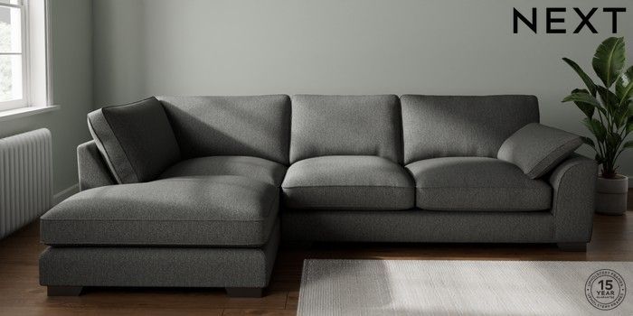 7.3.1 Buy Stamford Grand Relaxed Sit Large Corner Chaise - Left Hand Tweedy Chenille Dark Grey Large Square Angle - Gunmetal from the Next UK online shop Click here to use our accessible website