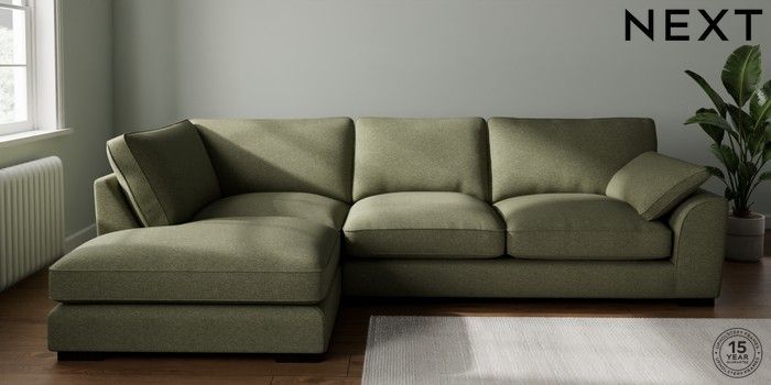 7.3.1 Buy Stamford Grand Relaxed Sit Large Corner Chaise - Left Hand Tweedy Chenille Mid Moss Green Large Square Angle - Dark from the Next UK online shop Click here to use our accessible website