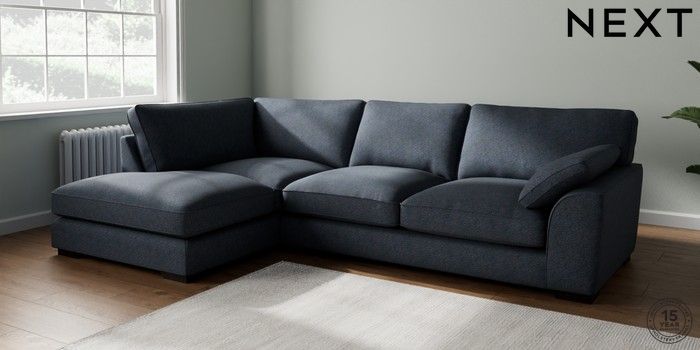 7.3.1 Buy Stamford Grand Relaxed Sit Large Corner Chaise - Left Hand Tweedy Chenille Navy Blue Large Square Angle - Dark from the Next UK online shop Click here to use our accessible website