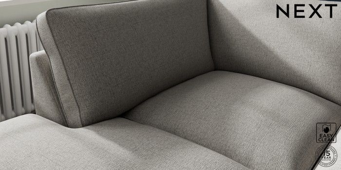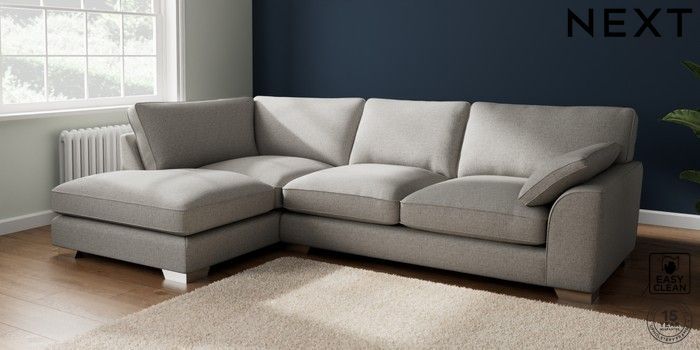 7.3.1 Buy Stamford Grand Relaxed Sit Large Corner Chaise - Left Hand Woven Chenille Easy Clean Light Grey Large Square Angle - Chrome Metal from the Next UK online shop Click here to use our accessible website