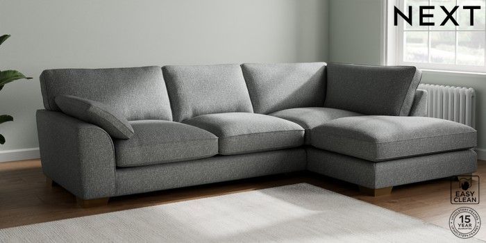 7.3.1 Buy Stamford Grand Relaxed Sit Large Corner Chaise - Right Hand Chunky Boucle Easy Clean Mid Grey Large Square Angle - Brushed Brass from the Next UK online shop Click here to use our accessible website