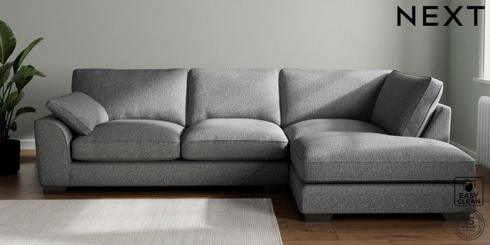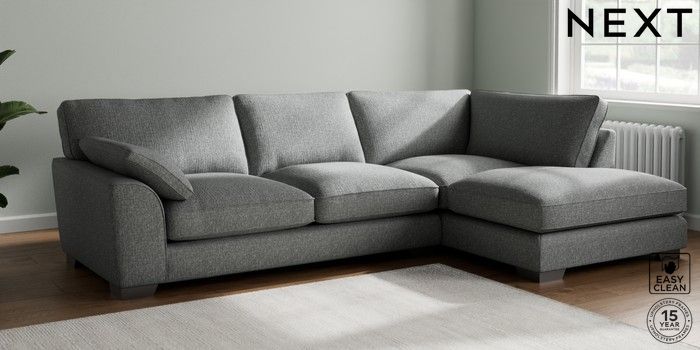 7.3.1 Buy Stamford Grand Relaxed Sit Large Corner Chaise - Right Hand Chunky Boucle Easy Clean Mid Grey Large Square Angle - Gunmetal from the Next UK online shop Click here to use our accessible website