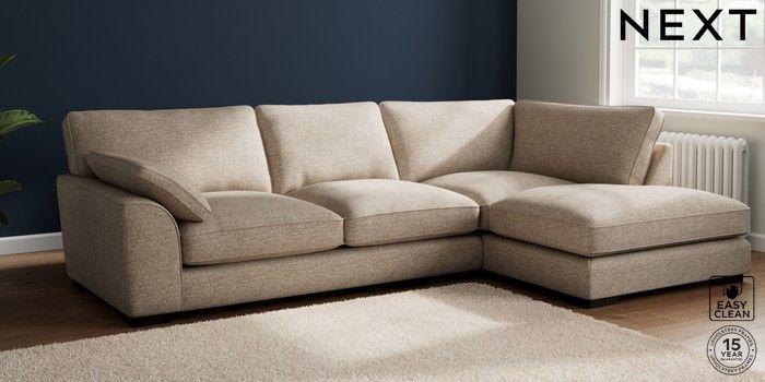 7.3.1 Buy Stamford Grand Relaxed Sit Large Corner Chaise - Right Hand Chunky Boucle Easy Clean Mid Natural Large Square Angle - Dark from the Next UK online shop Click here to use our accessible website