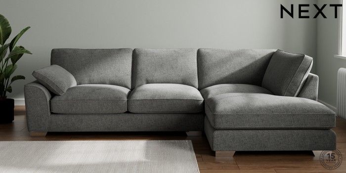 7.3.1 Buy Stamford Grand Relaxed Sit Large Corner Chaise - Right Hand Chunky Chenille Dark Grey Large Square Angle - Chrome Metal from the Next UK online shop Click here to use our accessible website