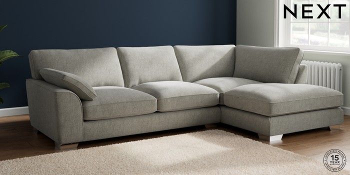 7.3.1 Buy Stamford Grand Relaxed Sit Large Corner Chaise - Right Hand Chunky Chenille Light Grey Large Square Angle - Chrome Metal from the Next UK online shop Click here to use our accessible website