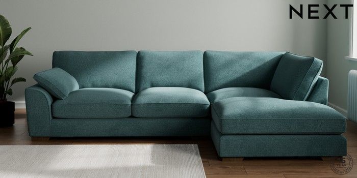 7.3.1 Buy Stamford Grand Relaxed Sit Large Corner Chaise - Right Hand Chunky Chenille Mid Teal Green Large Square Angle - Mid from the Next UK online shop Click here to use our accessible website