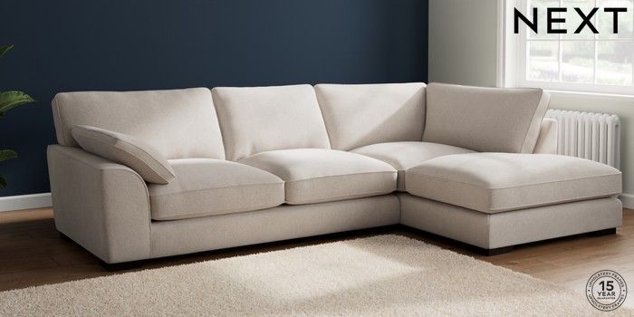 7.3.1 Buy Stamford Grand Relaxed Sit Large Corner Chaise - Right Hand Chunky Chenille Oyster Large Square Angle - Dark from the Next UK online shop Click here to use our accessible website