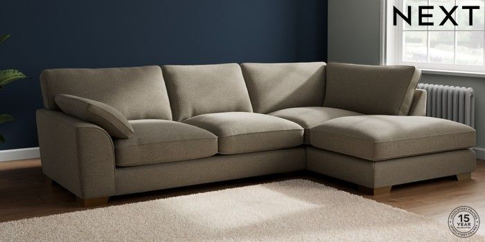 7.3.1 Buy Stamford Grand Relaxed Sit Large Corner Chaise - Right Hand Chunky Marl Light Olive Green Large Square Angle - Brushed Brass from the Next UK online shop Click here to use our accessible website