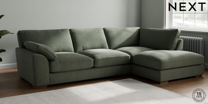 7.3.1 Buy Stamford Grand Relaxed Sit Large Corner Chaise - Right Hand Chunky Texture Mid Forest Green Large Square Angle - Mid from the Next UK online shop Click here to use our accessible website