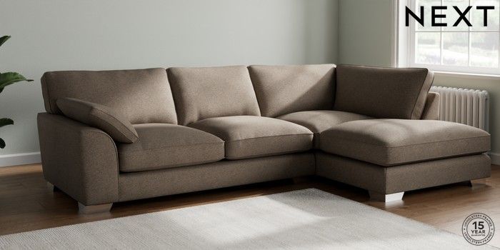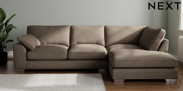 7.3.1 Buy Stamford Grand Relaxed Sit Large Corner Chaise - Right Hand Chunky Weave Dark Natural Large Square Angle - Chrome Metal from the Next UK online shop Click here to use our accessible website