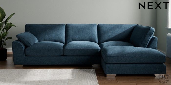 7.3.1 Buy Stamford Grand Relaxed Sit Large Corner Chaise - Right Hand Cotswold Chenille Dark Blue Large Square Angle - Chrome Metal from the Next UK online shop Click here to use our accessible website