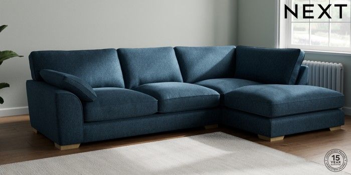 7.3.1 Buy Stamford Grand Relaxed Sit Large Corner Chaise - Right Hand Cotswold Chenille Dark Blue Large Square Angle - Light from the Next UK online shop Click here to use our accessible website
