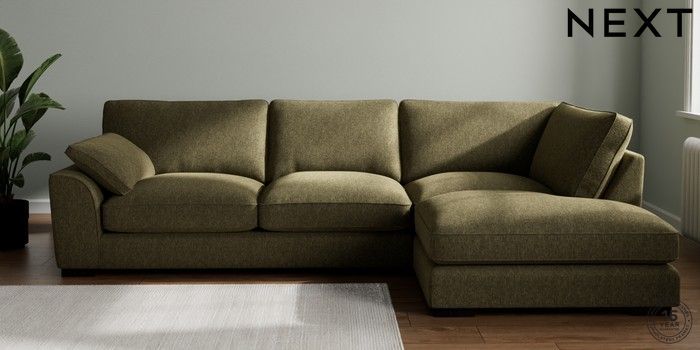 7.3.1 Buy Stamford Grand Relaxed Sit Large Corner Chaise - Right Hand Cotswold Chenille Dark Green Large Square Angle - Dark from the Next UK online shop Click here to use our accessible website