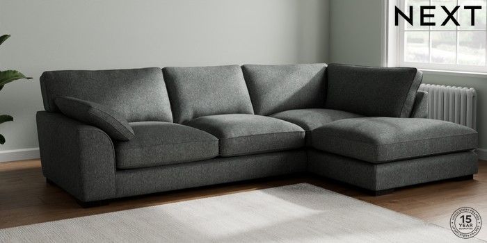7.3.1 Buy Stamford Grand Relaxed Sit Large Corner Chaise - Right Hand Cotswold Chenille Dark Grey Large Square Angle - Dark from the Next UK online shop Click here to use our accessible website