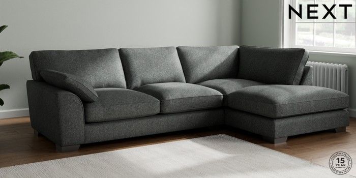 7.3.1 Buy Stamford Grand Relaxed Sit Large Corner Chaise - Right Hand Cotswold Chenille Dark Grey Large Square Angle - Gunmetal from the Next UK online shop Click here to use our accessible website
