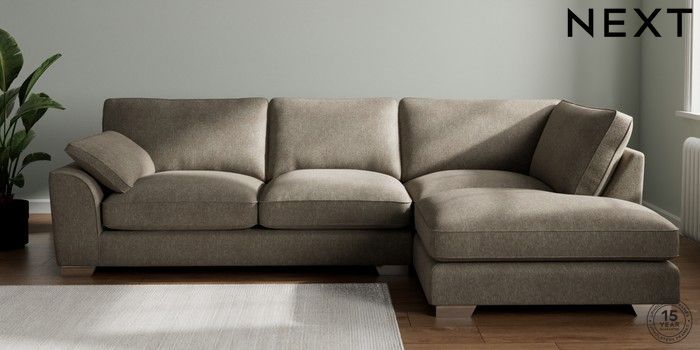 7.0.3 Buy Stamford Grand Relaxed Sit Large Corner Chaise - Right Hand Cotswold Chenille Mid Mink Brown Large Square Angle - Chrome Metal from the Next UK online shop Click here to use our accessible website