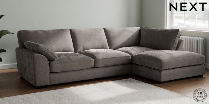 7.3.1 Buy Stamford Grand Relaxed Sit Large Corner Chaise - Right Hand Distressed Velour French Grey Large Square Angle - Dark from the Next UK online shop Click here to use our accessible website