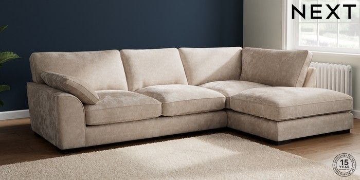 7.3.1 Buy Stamford Grand Relaxed Sit Large Corner Chaise - Right Hand Distressed Velour Mid Natural Large Square Angle - Dark from the Next UK online shop Click here to use our accessible website