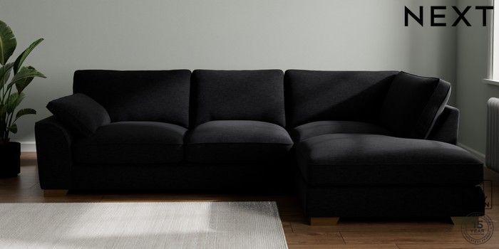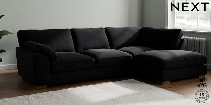 7.3.1 Buy Stamford Grand Relaxed Sit Large Corner Chaise - Right Hand Fine Chenille Easy Clean Black Large Square Angle - Brushed Brass from the Next UK online shop Click here to use our accessible website