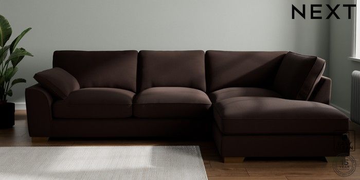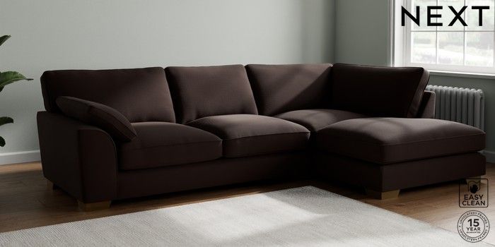 7.3.1 Buy Stamford Grand Relaxed Sit Large Corner Chaise - Right Hand Fine Chenille Easy Clean Chocolate Brown Large Square Angle - Brushed Brass from the Next UK online shop Click here to use our accessible website