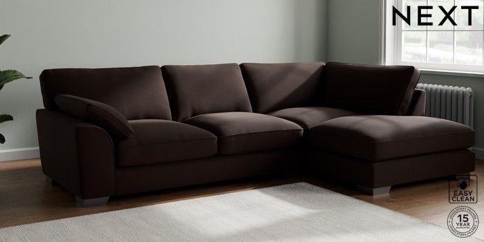 7.3.1 Buy Stamford Grand Relaxed Sit Large Corner Chaise - Right Hand Fine Chenille Easy Clean Chocolate Brown Large Square Angle - Gunmetal from the Next UK online shop Click here to use our accessible website