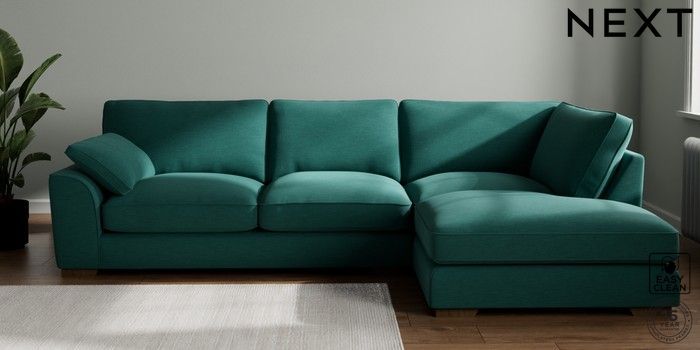 7.3.1 Buy Stamford Grand Relaxed Sit Large Corner Chaise - Right Hand Fine Chenille Easy Clean Dark Juniper Green Large Square Angle - Mid from the Next UK online shop Click here to use our accessible website