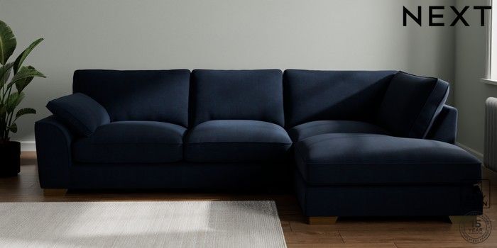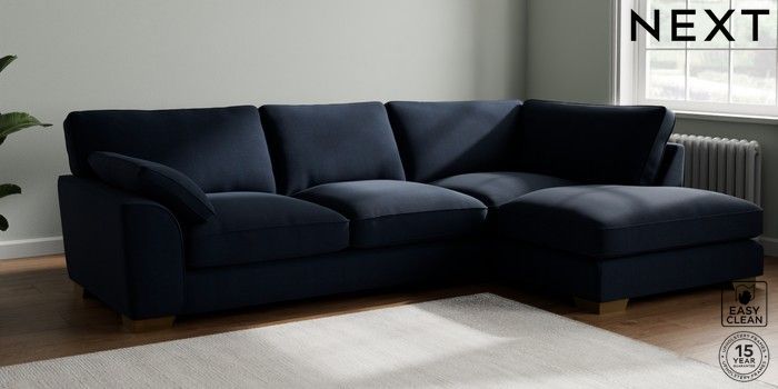 7.3.1 Buy Stamford Grand Relaxed Sit Large Corner Chaise - Right Hand Fine Chenille Easy Clean Dark Navy Blue Large Square Angle - Brushed Brass from the Next UK online shop Click here to use our accessible website