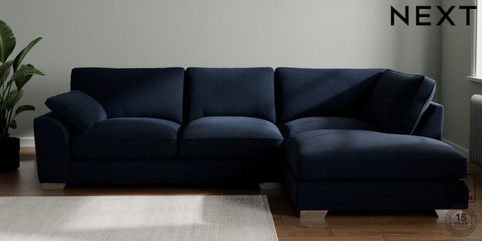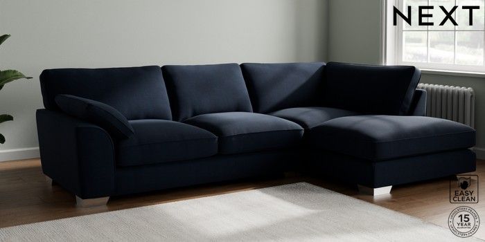 7.3.1 Buy Stamford Grand Relaxed Sit Large Corner Chaise - Right Hand Fine Chenille Easy Clean Dark Navy Blue Large Square Angle - Chrome Metal from the Next UK online shop Click here to use our accessible website