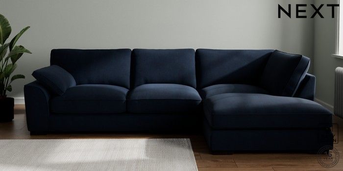 7.3.1 Buy Stamford Grand Relaxed Sit Large Corner Chaise - Right Hand Fine Chenille Easy Clean Dark Navy Blue Large Square Angle - Dark from the Next UK online shop Click here to use our accessible website