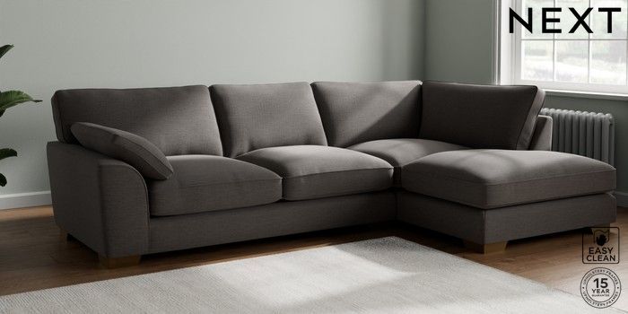7.3.1 Buy Stamford Grand Relaxed Sit Large Corner Chaise - Right Hand Fine Chenille Easy Clean Dark Smoke Grey Large Square Angle - Brushed Brass from the Next UK online shop Click here to use our accessible website