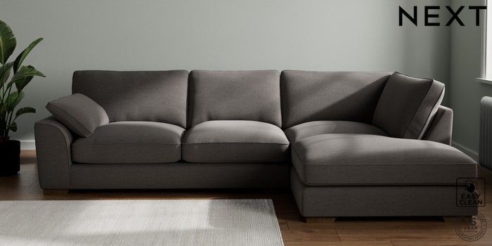 7.3.1 Buy Stamford Grand Relaxed Sit Large Corner Chaise - Right Hand Fine Chenille Easy Clean Dark Smoke Grey Large Square Angle - Mid from the Next UK online shop Click here to use our accessible website