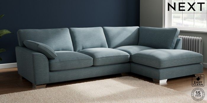 7.3.1 Buy Stamford Grand Relaxed Sit Large Corner Chaise - Right Hand Fine Chenille Easy Clean Mid Blue Large Square Angle - Chrome Metal from the Next UK online shop Click here to use our accessible website