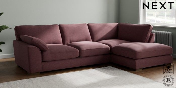 7.3.1 Buy Stamford Grand Relaxed Sit Large Corner Chaise - Right Hand Fine Chenille Easy Clean Mid Mulberry Purple Large Square Angle - Mid from the Next UK online shop Click here to use our accessible website