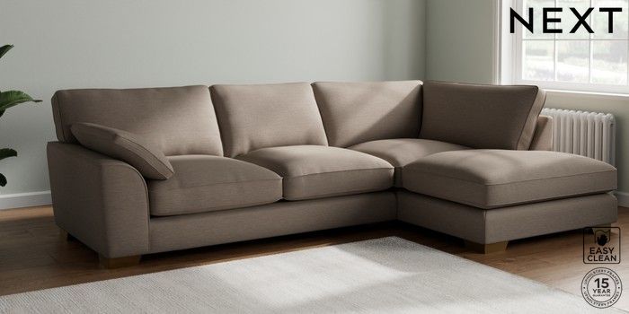 7.3.1 Buy Stamford Grand Relaxed Sit Large Corner Chaise - Right Hand Fine Chenille Easy Clean Mid Taupe Brown Large Square Angle - Brushed Brass from the Next UK online shop Click here to use our accessible website