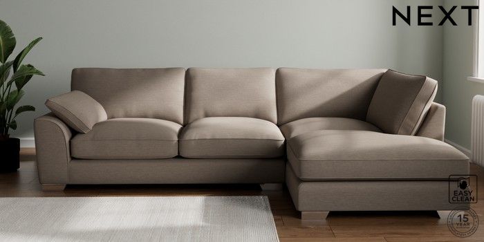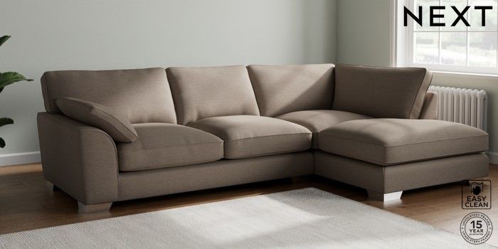 7.3.1 Buy Stamford Grand Relaxed Sit Large Corner Chaise - Right Hand Fine Chenille Easy Clean Mid Taupe Brown Large Square Angle - Chrome Metal from the Next UK online shop Click here to use our accessible website