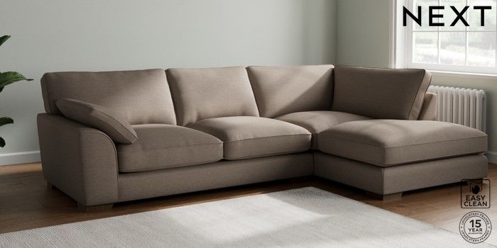 7.3.1 Buy Stamford Grand Relaxed Sit Large Corner Chaise - Right Hand Fine Chenille Easy Clean Mid Taupe Brown Large Square Angle - Mid from the Next UK online shop Click here to use our accessible website