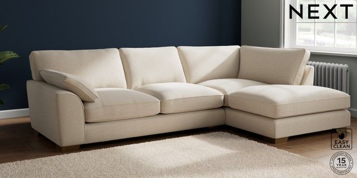 7.3.1 Buy Stamford Grand Relaxed Sit Large Corner Chaise - Right Hand Fine Chenille Easy Clean Oyster Large Square Angle - Brushed Brass from the Next UK online shop Click here to use our accessible website